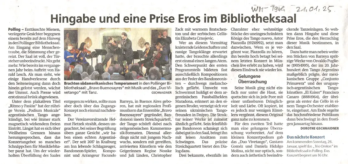 Regine Noßke, Juli Linden (Violinen) | Christopher Zack (Viola) Elizabeta Crnojević (Violoncello) Facundo Barreyra (Bandoneon)