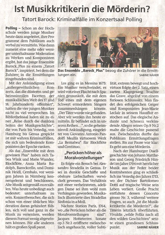 Rafaela Salgado, Cembalo | Bianca Cucini, Viola da Gamba | Daria Spiridonova, Violine | Silvia Berchtold, Blockflöten