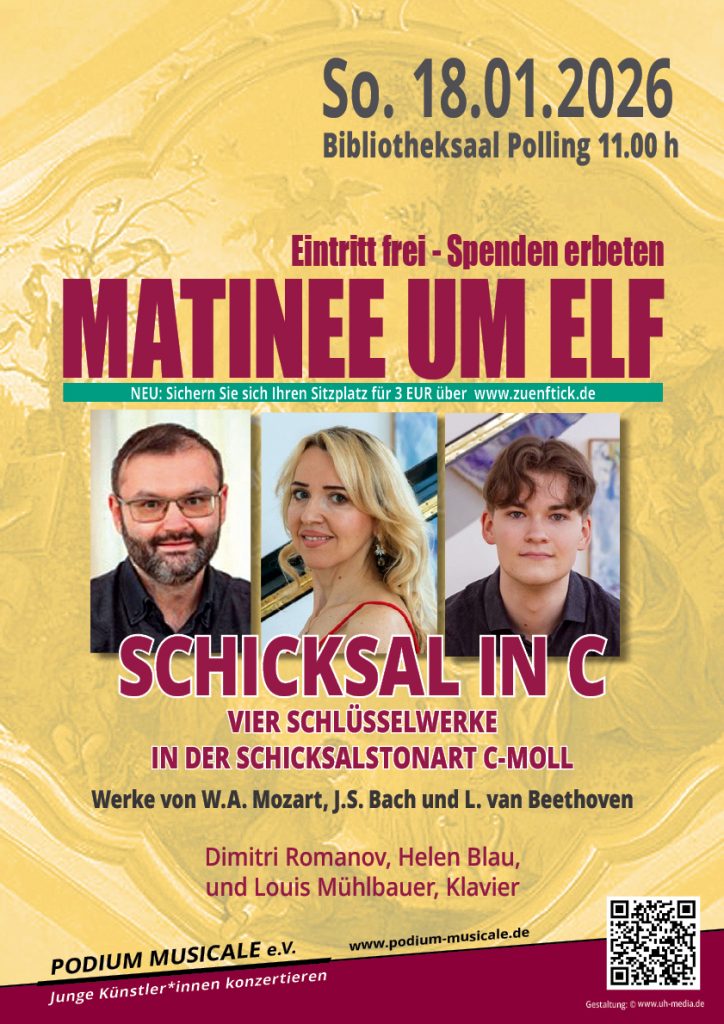 Das Programm ´Schicksal in C – Vier Schlüsselwerke in der Schicksalstonart c-Moll´ entstammt einer von Louis Mühlbauer konzipierten Konzertreihe im Pianistenclub, in der die Charakteristika der verschiedenen Tonartendes Quintenzirkels thematisiert werden – mit ausgesprochen positiver Publikumsresonanz vor stets ausverkauftem Haus im Mühsam-Saal der Seidlvilla und dem Johannissaal im Schloss Nymphenburg.